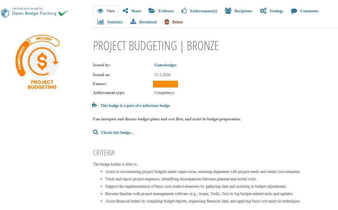 Competence-based badges, by contrast, recognise proven skills or knowledge. To earn one, the learner must provide concrete evidence, such as a project or assessment, which is then evaluated against clear, predefined criteria. These badges offer credible validation of abilities and are also valued by employers. (Heinonen, 2025; Motheeram, Herselman & Botha 2018.)